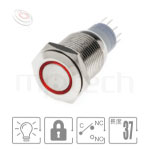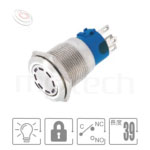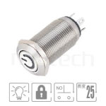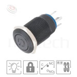 標示出開關觸點/接點的組合形式。是指 這個開關有怎麼樣的開關迴路(Circuit)可以使用。金屬按鈕開關通常有三種接點迴路:N.O.、N.C.、COM.。