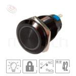 是一個開關動作型式。指這個開關在您按下之後,按鈕內部機械構造做了哪個後續動作;按開關的手在放開之後,沒有彈起就是"自鎖";反之,鬆手立刻彈起的就是"復歸"。